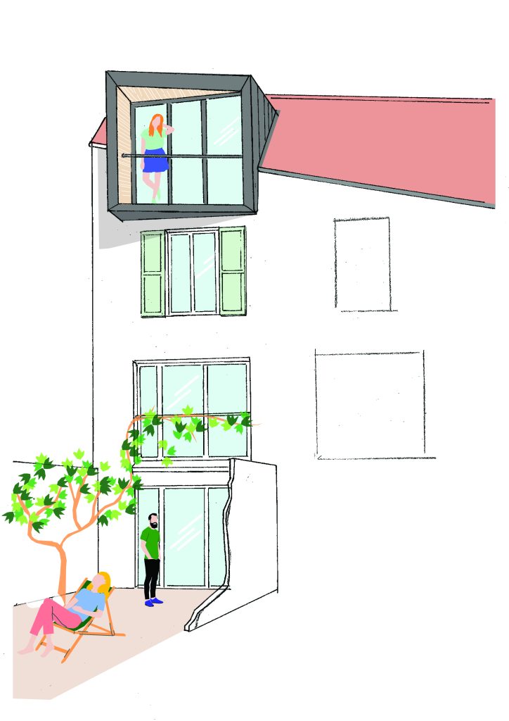 L’atelier Silhouette Urbaine a été contacté par une famille qui souhaitait surélever sa maison mitoyenne afin d’aménager ses combles en une suite parentale.