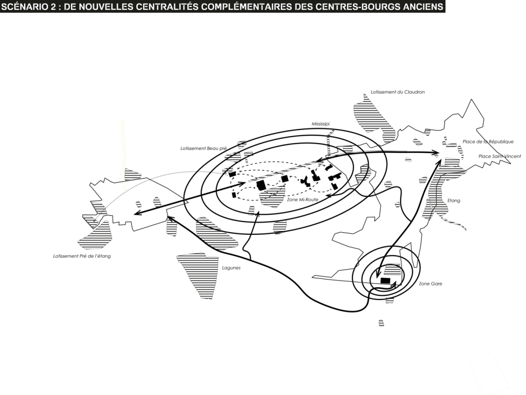 Finalement la dernière phase de notre étude a permis d’identifier des secteurs prioritaires et de représenter leur évolution potentielle à court, moyen et long terme. Ce travail a donné lieu à une série de recommandations opérationnelles à destination des élus et des futurs aménageurs, qui ont été présentées aux habitants de la commune lors d’une réunion publique.